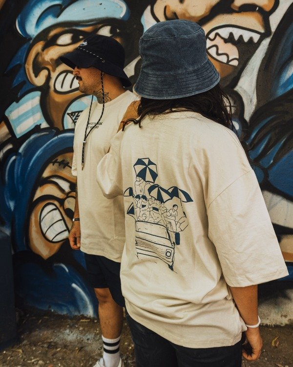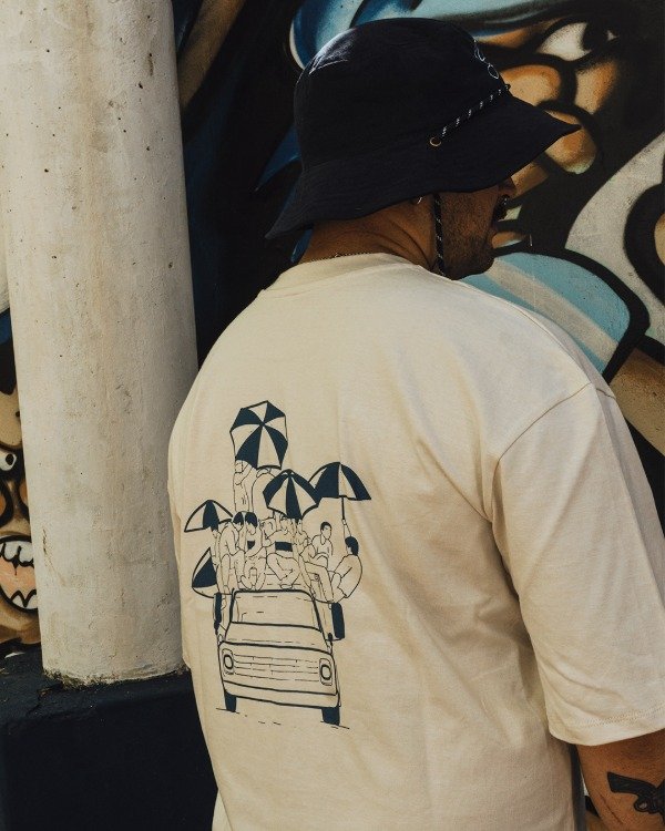 Remera estilo Over en algodón peinado 20.1 con cuello forrado color crudo.