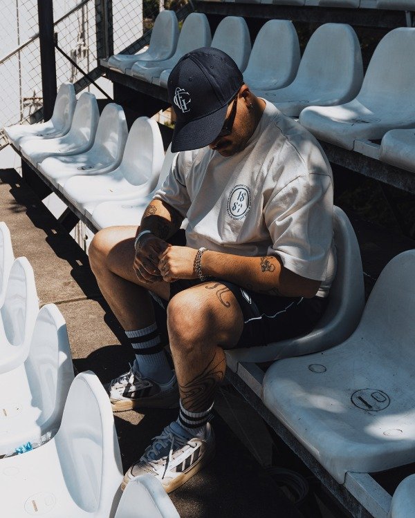 Remera estilo Over en algodón peinado 20.1 con cuello forrado color crudo.
